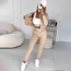 This three-piece set is a must-have for any wardrobe, offering the perfect mix of comfort and style. It includes a zip-up top, a basic inner layer, and relaxed-fit pants. Decorative details on the top and bottoms add a fun, fashionable touch to the look.